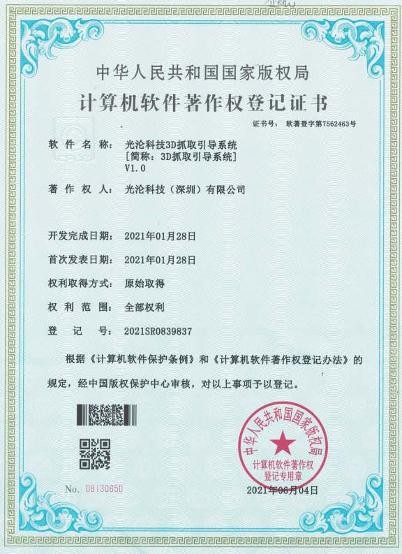 光淪科技工業(yè)機(jī)器人視覺(jué)相機(jī)獲得了多項(xiàng)國(guó)家專(zhuān)利及軟件著作權(quán),公司自成立以來(lái)一直堅(jiān)持自主知識(shí)產(chǎn)權(quán)研發(fā)工業(yè)3D相機(jī)!