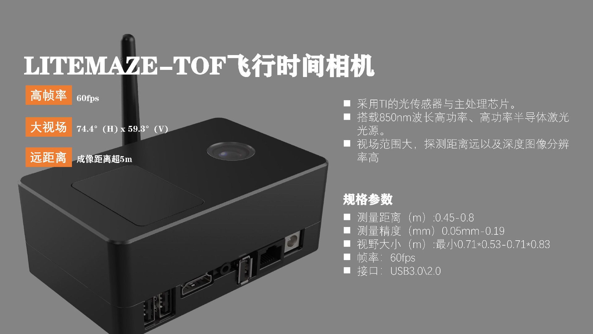 TOF飛行時間相機「ToF相機」采用TI的光傳感器與主處理芯片,該款智能工業(yè)相機同時搭載850nm波長高功率、高功率半導···